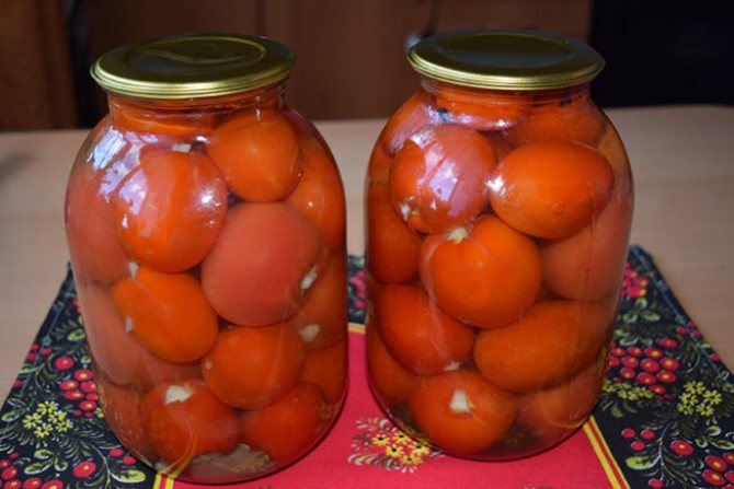 Готовить консервы можно без стерилизации. Для этого используется метод двукратной заливки. Сначала помидоры заливают кипятком и оставляют на 15 минут, затем воду сливают и заливают кипящий маринад до самого верха банки. Затем банки сразу закатывают.