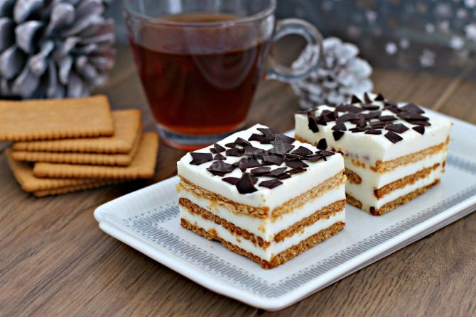 К счастью для многих сейчас есть альтернатива, и можно делать десерты без выпечки быстро и просто, взяв за основу печенье. Помните, как в детстве две печенюшки соединяли между собой маслом или кремом? Возможно, это и послужило толчком при возникновении замечательной идеи — почему бы таким образом не соединить много печенья в целый торт?! Кто это придумал — неизвестно, но надо сказать ему огромное спасибо!