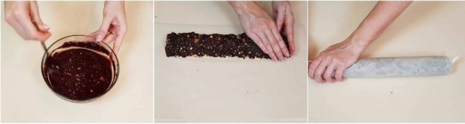 Сладкая шоколадная колбаса из печенья по классическому рецепту