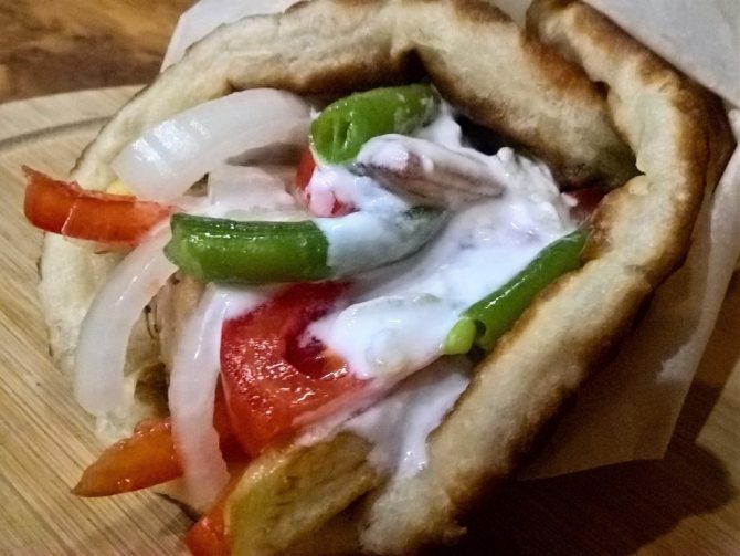 - если делать гирос в пите, не набивайте ее плотно и до самого верха — содержимое будет вываливаться.
