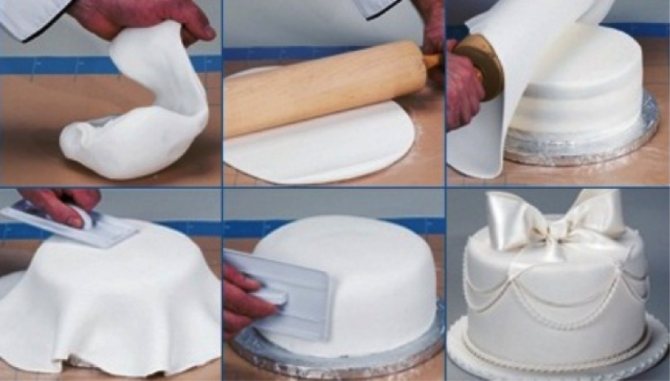 Чтобы сделать торт с мастикой — простой или сложный, не нужно торопиться. Тогда даже начинающий кондитер сможет сделать свой маленький шедевр. Алгоритм простой обтяжки торта выглядит так: