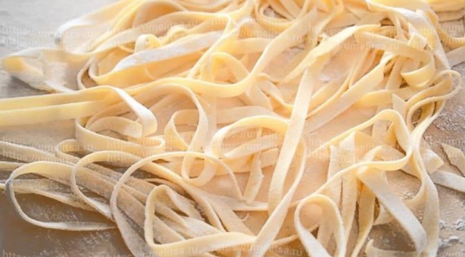 - В итоге получаются тонкие и длинные жгуты размером не больше 5 мм, которые оптимально подойдут для того, чтобы сварить лапшу на лагман по рецепту.