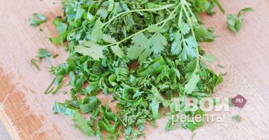 2 Зелень промыть, обсушить и мелко порубить. Несколько веточек можно оставить для украшения.