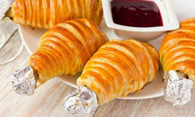 Готовятся куриные ножки в слоеном тесте примерно один час.