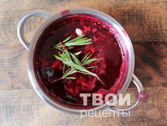 Добавить чеснок, щепотку соли и розмарин, еще кипятить пять минут.