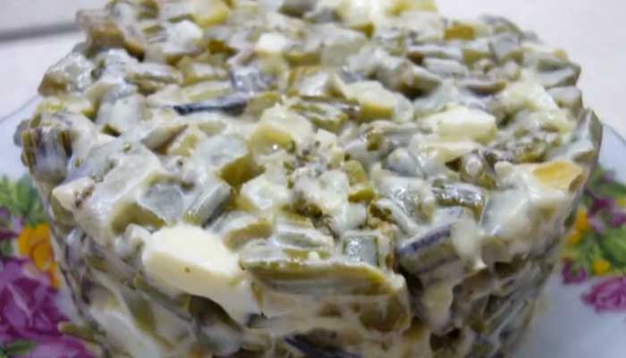 - Салат из папоротника с маринованным огурцом, яйцами и майонезом