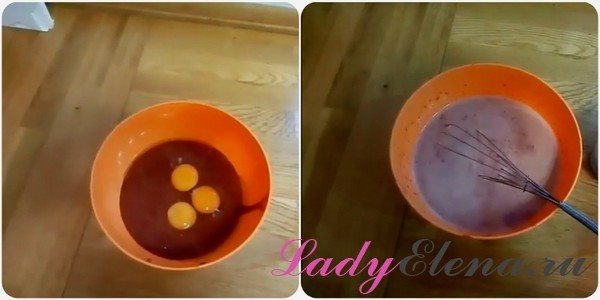 2. Добавляем в смесь яйца и сметану (100 гр) и взбиваем венчиком.