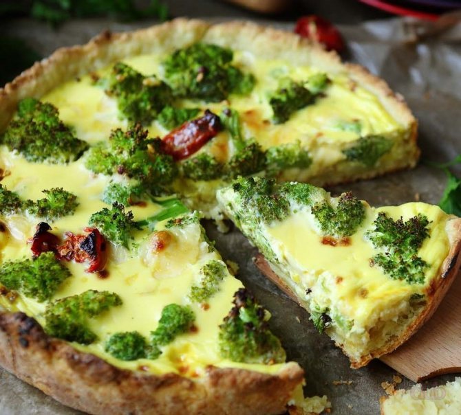 А вот еще один вкусный пирог из категории выпечки без духовки. Он тоже относится к заливным. Однако для его приготовления нам потребуется и пласт слоеного теста.