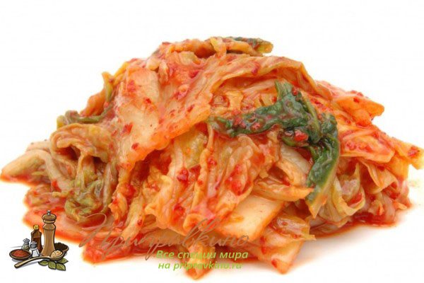 Кимчи – это общее название ферментированных (квашеных) овощей, к которым относится большой ассортимент – от огурцов и перца чили до горчичных листьев, но в самом известном варианте содержится капуста, приправленная чесноком, имбирем, зеленым луком, перцем чили (кочукару) и рыбный соусом.