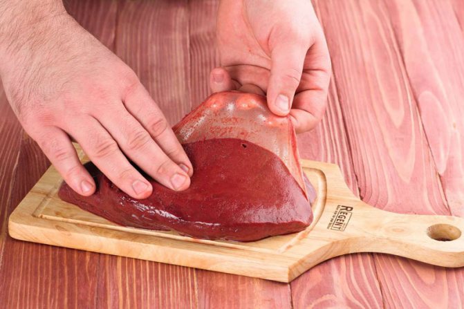 1. Печень нужно промыть. Перед готовкой нужно снять пленку с печени.