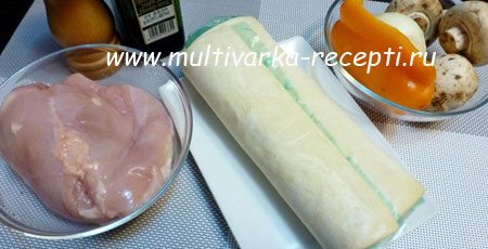 Ингредиенты для приготовления слоек с курицей и грибами: