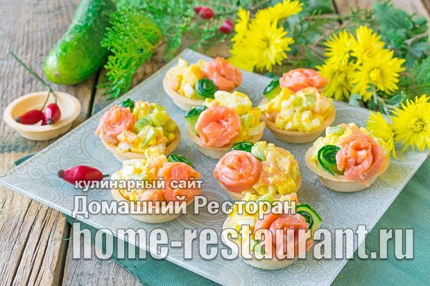Рецепт тарталеток с семгой, сыром и огурцом «Праздничные розочки»