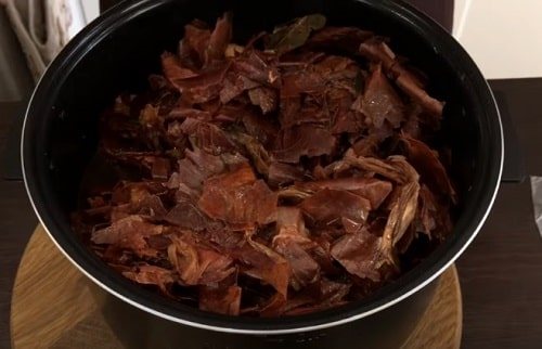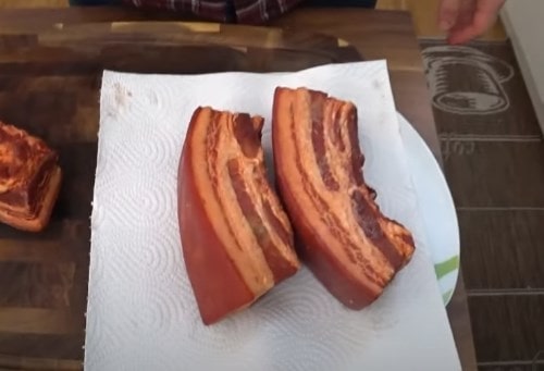 - После сигнала мультиварки достаньте грудинку, просушите.