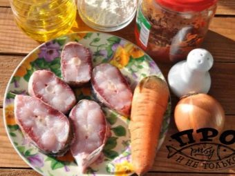 Лук должен быть порезан в виде колец, толщина которых около 5 миллиметров. Сковородка берется либо чугунная, либо иная, но дно должно быть толстым, а вместимость большой. Пока она греется на плите, наливают рафинированное маслице, прогревают его. Перед тем, как жарить, куски рыбы помещают в муку, стряхнув лишнюю, раскладывают их по сковородке с начавшим шипеть маслом.